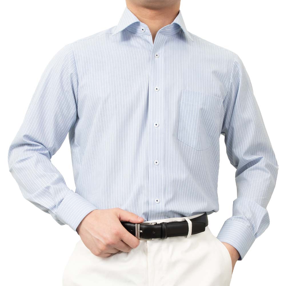 【CYGNUS】/ワイシャツ/綿/ポリエステル/BLUE/ワイシャツ ストライプ ブルー ドビー AgFresh 防臭 抗菌 CYGNUS-L84