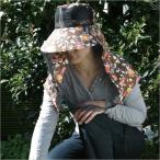 虫除け 帽子 虫よけガーデニングハット ブラウン系花柄日焼け対策 首 デコルテ UVカット 紫外線対策 日焼け対策