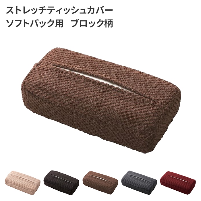 値下げ ティッシュカバー ティッシュ ストレッチカバー ソフトパック用 ティッシュ用カバー ブロック柄 卓上 雑貨 シンプル カジュアル