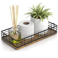 Basket, 13 Inch Farmhouse Bathroom Basket MDF and Iron Tray Top of Storage To...