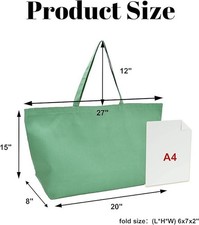 28in Canvas Tote Bag Reusable Grocery Bag Large Heavy Duty Shopping Bag