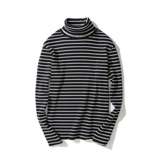 Men's Shirt Turtleneck Tops Sweatshirt Long Sleeves Sweater Cotton Striped Warm