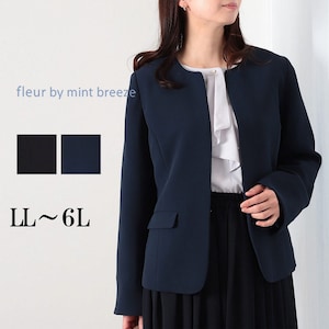 【フルールバイミントブリーズ/fleur by mint breeze】ダブルクロスノーカラージャケット 【大きいサイズ】