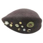 中古 美品 ノーブランド ウール ベレー帽 帽子 ビジュー 装飾 ブラウン レディース●10 【ベクトル 古着】