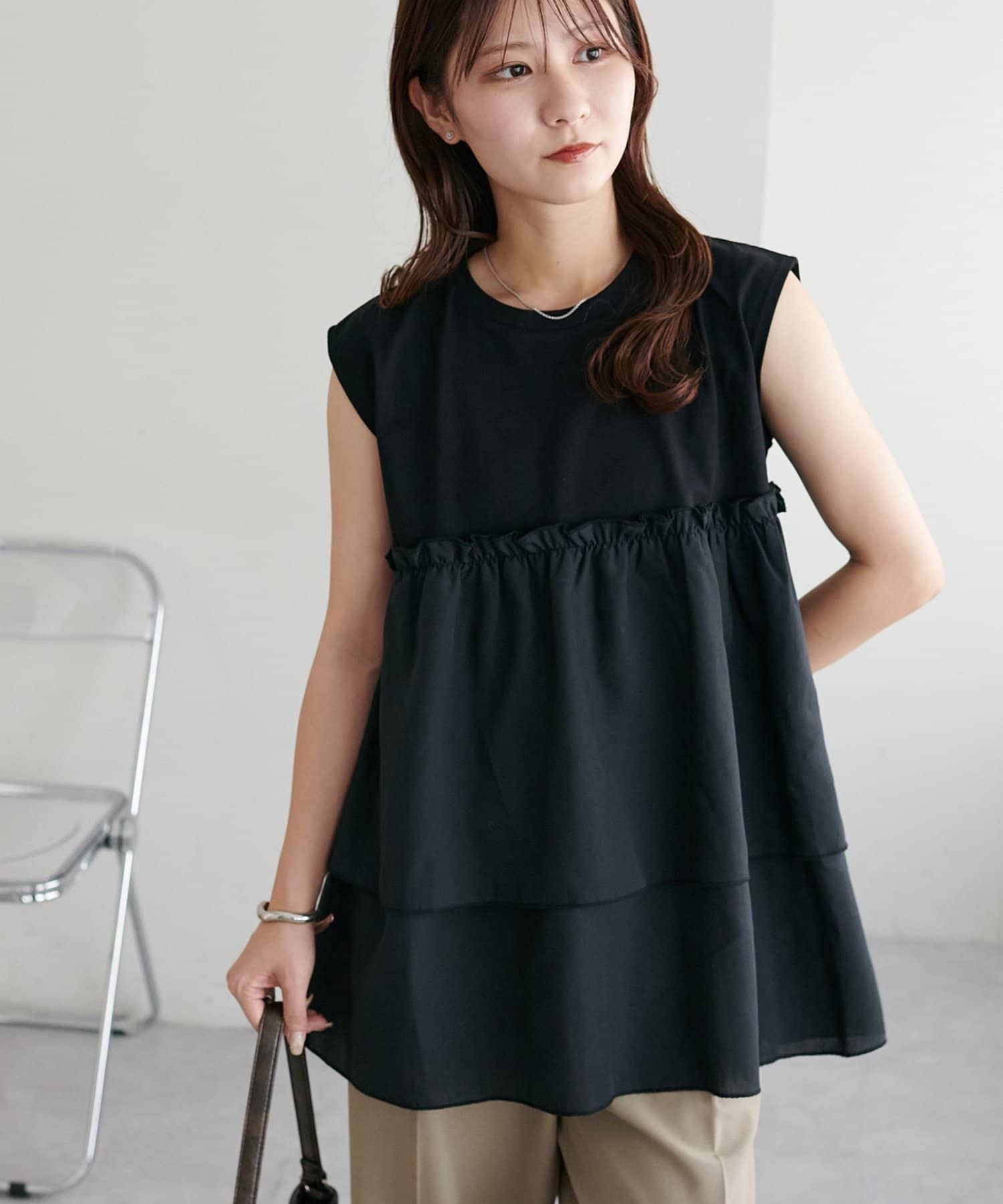 DISCOAT(ディスコート) レディース 【新色追加!/WEB限定】2段フリルドッキングトップス ブラック