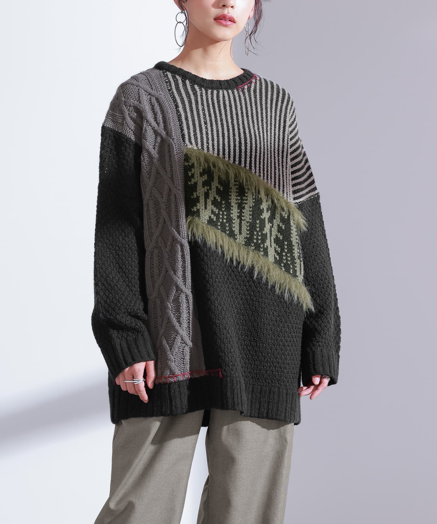 編地切替デザインニット【メール便不可】【30】【SALE】 フリーサイズ ブラック