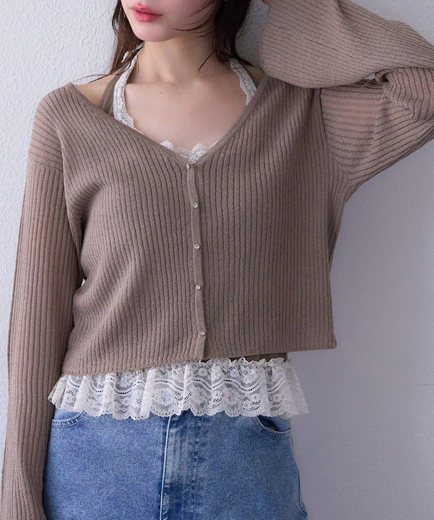NICE CLAUP / OLIVE des OLIVE OUTLET(ナイスクラップ / オリーブ デ オリーブ アウトレット) レディース 【one after another】ビジュー釦ラメシアーカーデ モカ