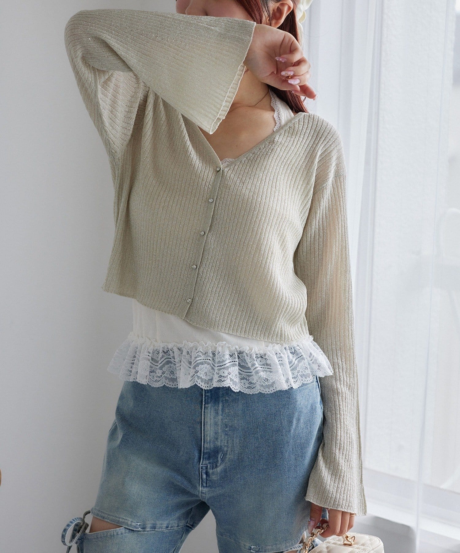 NICE CLAUP / OLIVE des OLIVE OUTLET(ナイスクラップ / オリーブ デ オリーブ アウトレット) レディース 【one after another】ビジュー釦ラメシアーカーデ オフホワイト