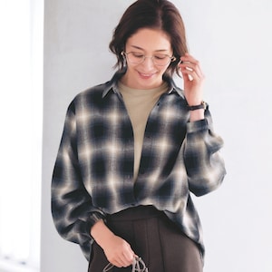 【ラ・フィット/la*fite】シアーチェックギャザーシャツ