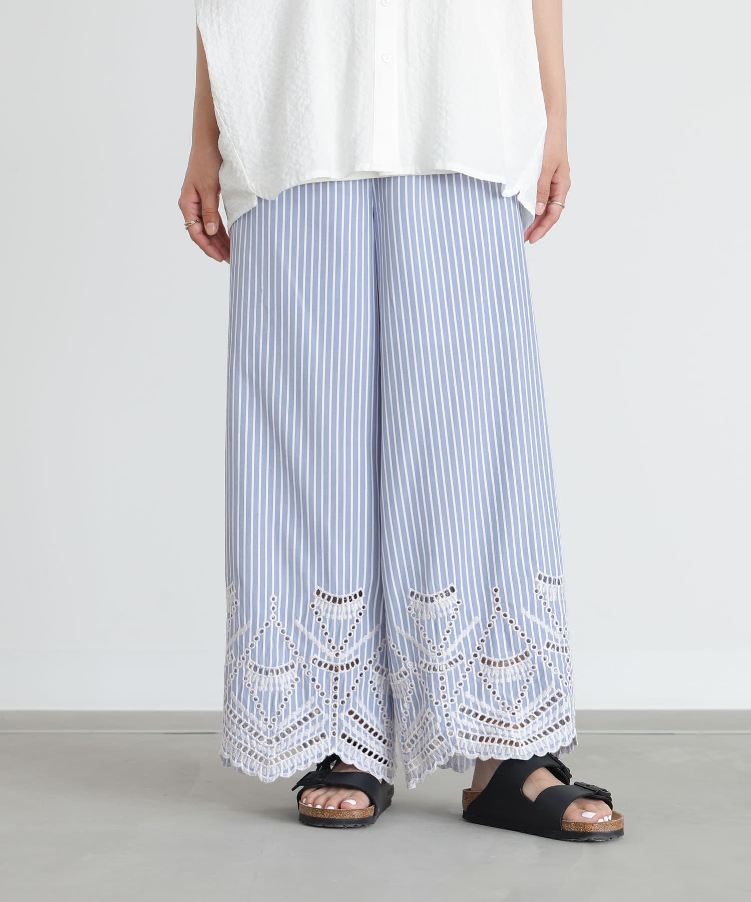 裾刺繍柄パンツ※メール便可※【10】【SALE】 1(M~L) ブラックチェック
