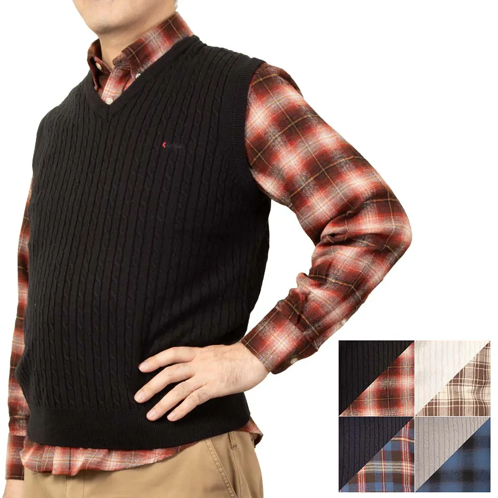 【Kansai】/カジュアルシャツ/NKE852ネルシャツ×NKC788ケーブルニットベスト セット(ラッピング不可)-C-L