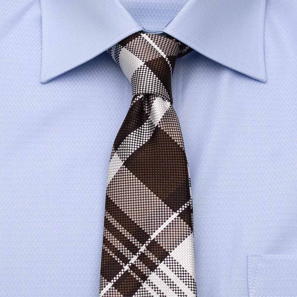 【SWAN】/ビジネス雑貨/シルク/BROWN/ネクタイ シルク100% 7センチ チェック ブラウン 茶色 プレゼント 就活 成人式(ラッピング不可)