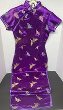 VINTAGE Golden Dragon Satin Dress China Size Small Oriental Purple Butterflies