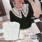 付け襟 つけ襟 レディース 女性 角襟 前ボタン ブラウス風デザイン シャツ型 ビッグカラー 大きめ襟 シフォン調レース 花柄 フラワー スカラップレ