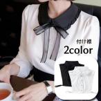 付け襟 つけ襟 レディース 女性 フリル襟 前ボタン ブラウス風デザイン シャツ型 リボン結び シフォン調リボン おしゃれ かわいい 上品 清楚 きれ