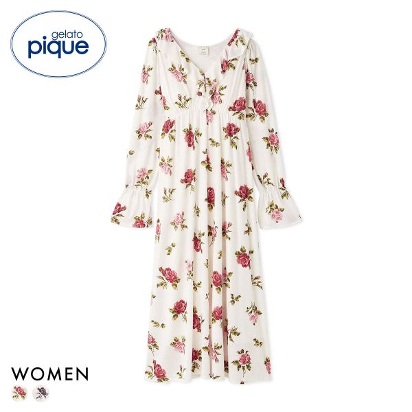 ジェラートピケ レディース ヴィンテージローズ柄ワンピース ドレス カップ付き カップイン ジェラピケ ルームウェア gelato pique