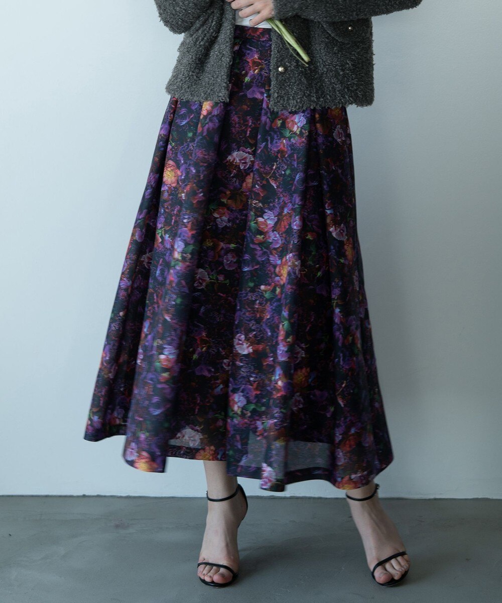 【オンワード】 自由区>スカート 【カトリエムブーケ】フラワープリントフレアスカート ボルドー 40 レディース