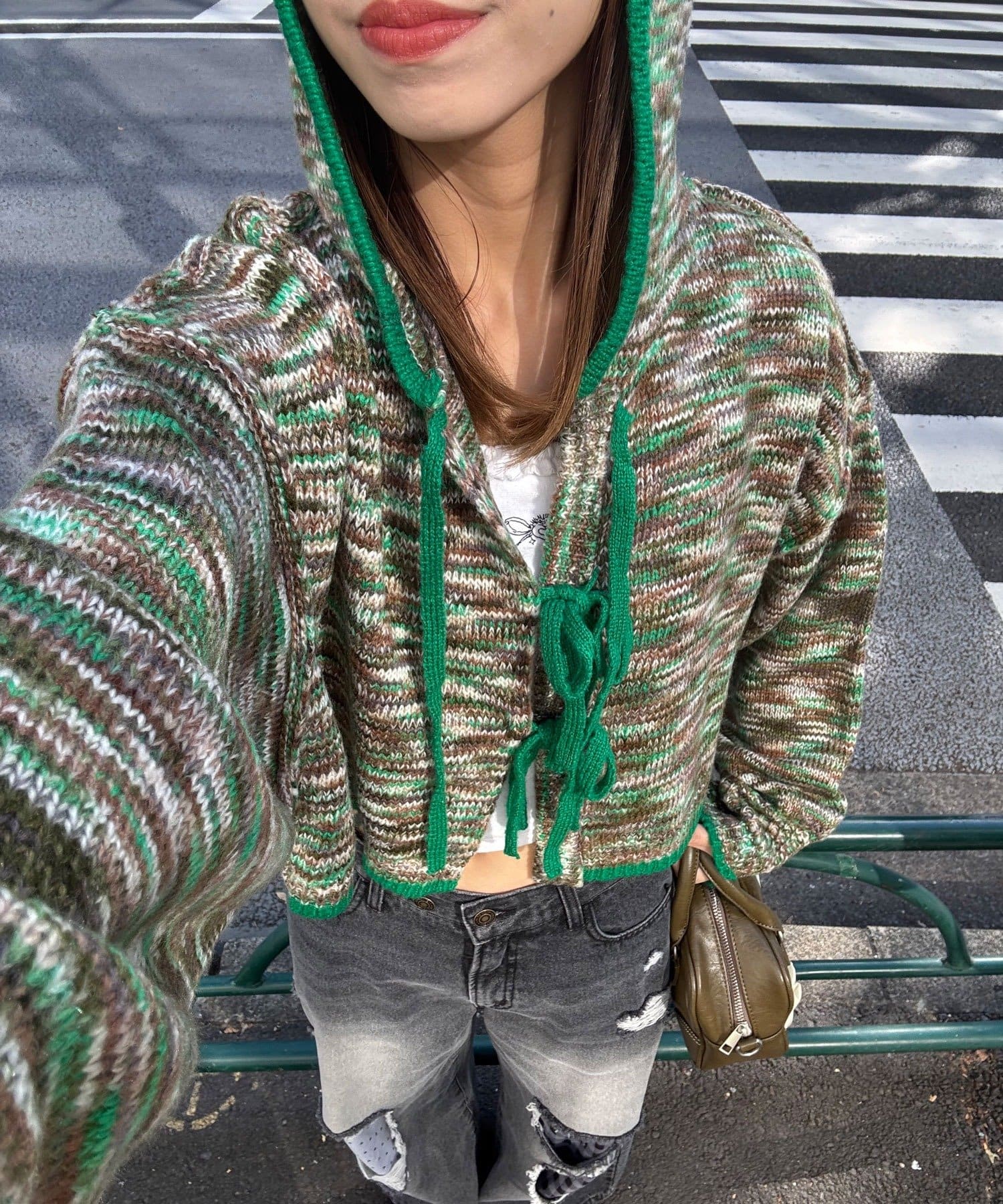 CIAOPANIC(チャオパニック) レディース 【新色追加】配色リボンニットフーディー グリーン