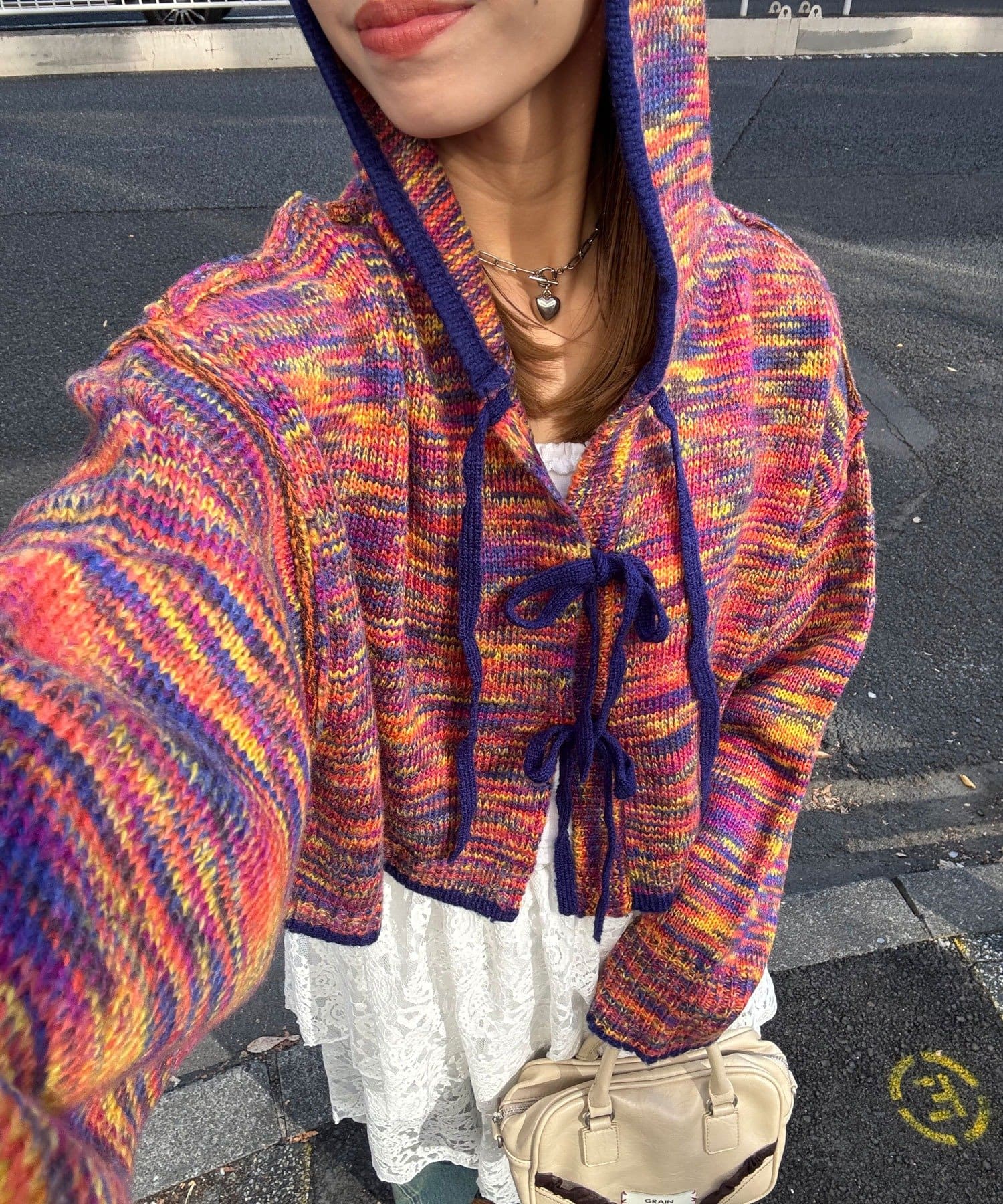 CIAOPANIC(チャオパニック) レディース 【新色追加】配色リボンニットフーディー バイオレット