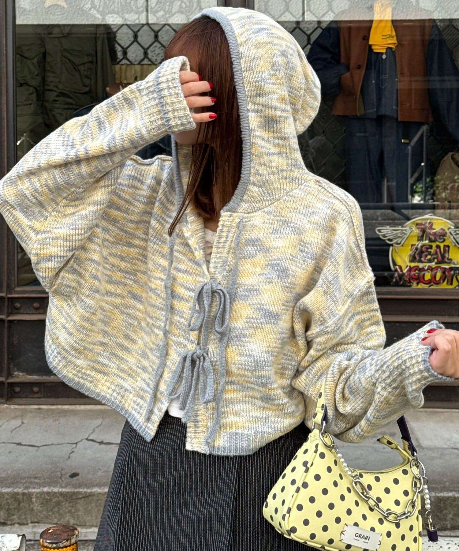 CIAOPANIC(チャオパニック) レディース 【新色追加】配色リボンニットフーディー イエロー