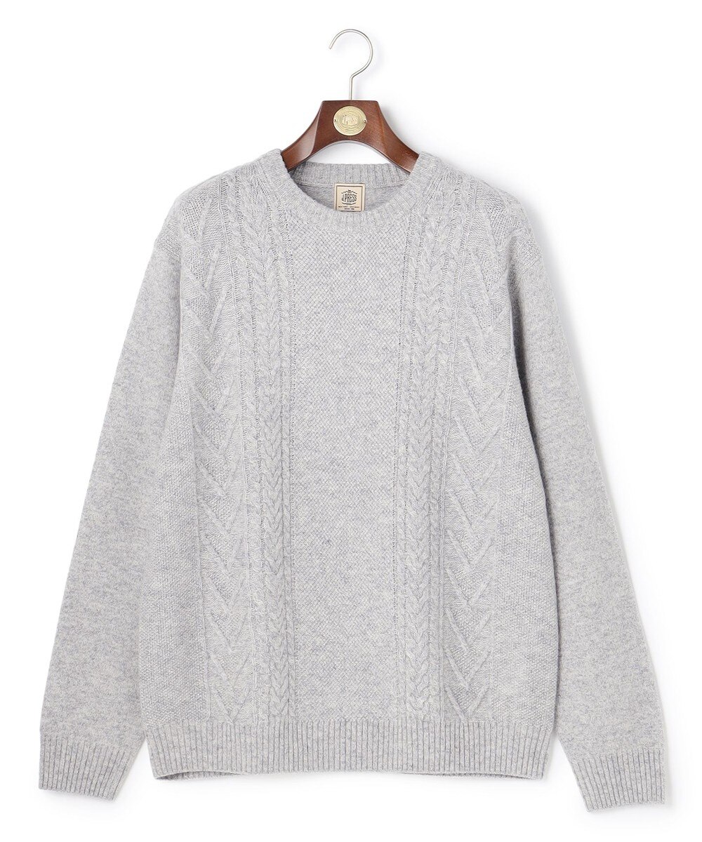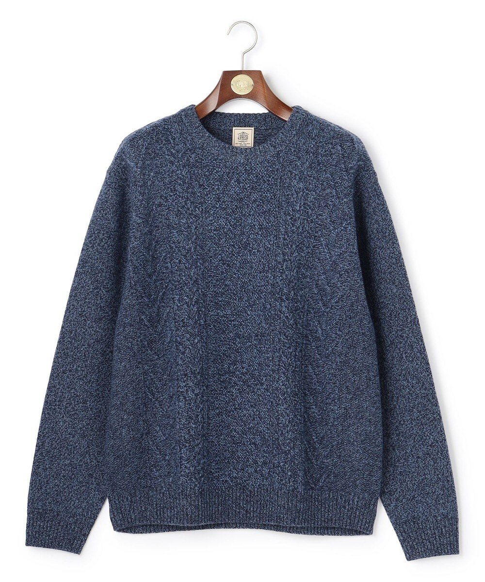 【オンワード】 J.PRESS MEN>トップス ウール×カシミヤの上質素材【Cash Lamb's Wool】ケーブルクルーネック ニット_25年モデル ブルー L メンズ