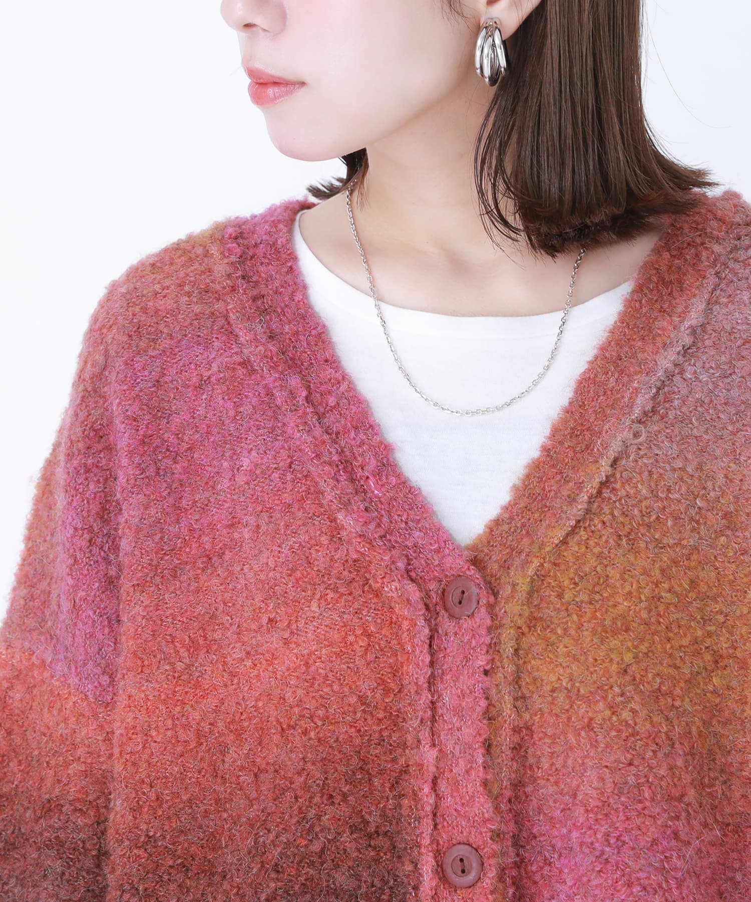 グラデーション柄ブークレニットカーディガン【メール便不可】【50】【SALE】 フリーサイズ オレンジ