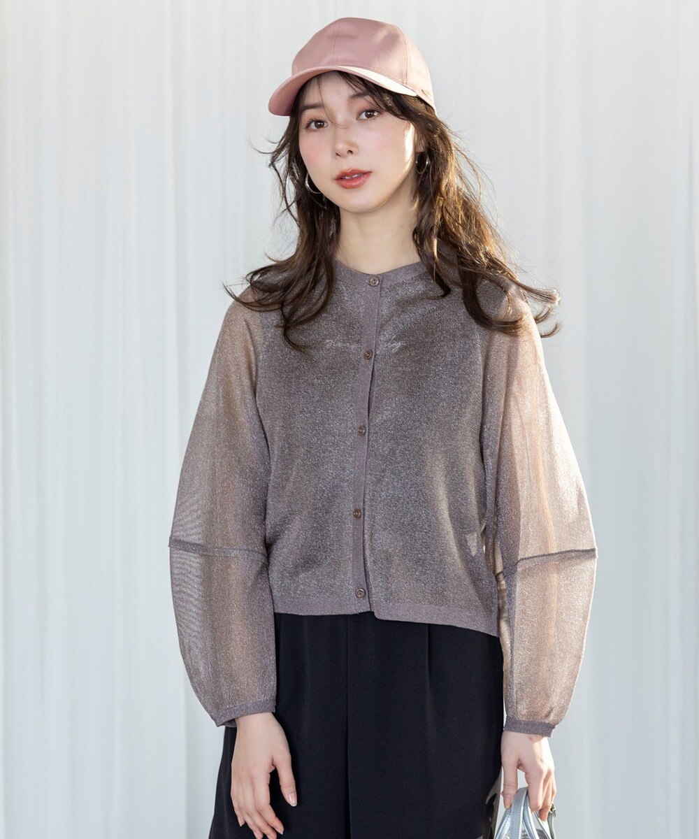 【オンワード】 ANY SIS>トップス 【洗える】シアーランタンスリーブ カーディガン モカ 2 レディース