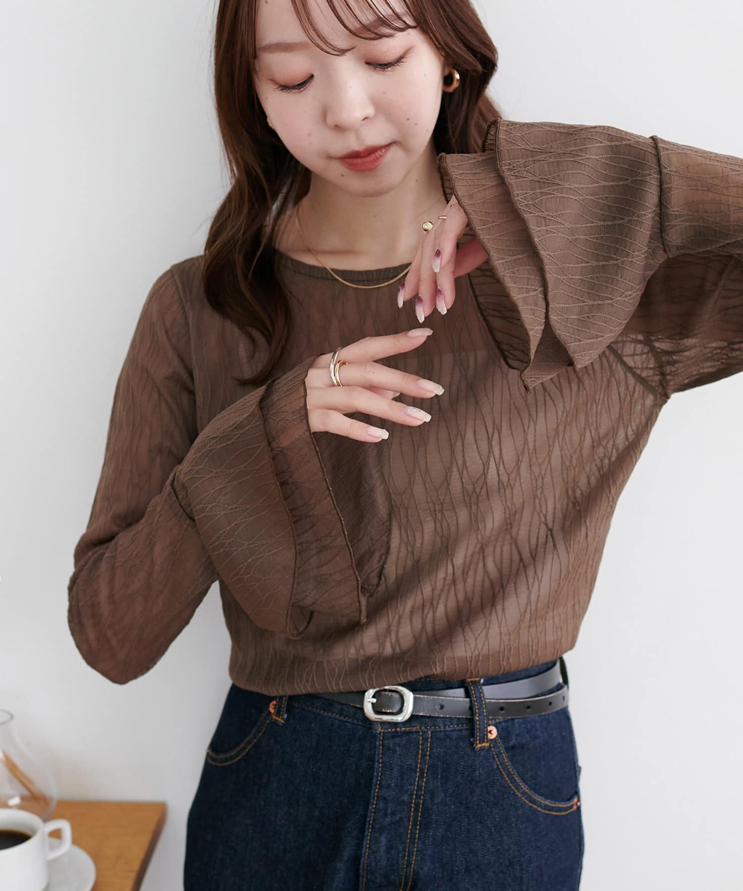 DISCOAT(ディスコート) レディース 【WEB限定】スモッキングレースプルオーバー ブラウン