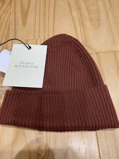 STUDIO NICHOLSON Brown Ribbed Knit Beanie Cotton Wool