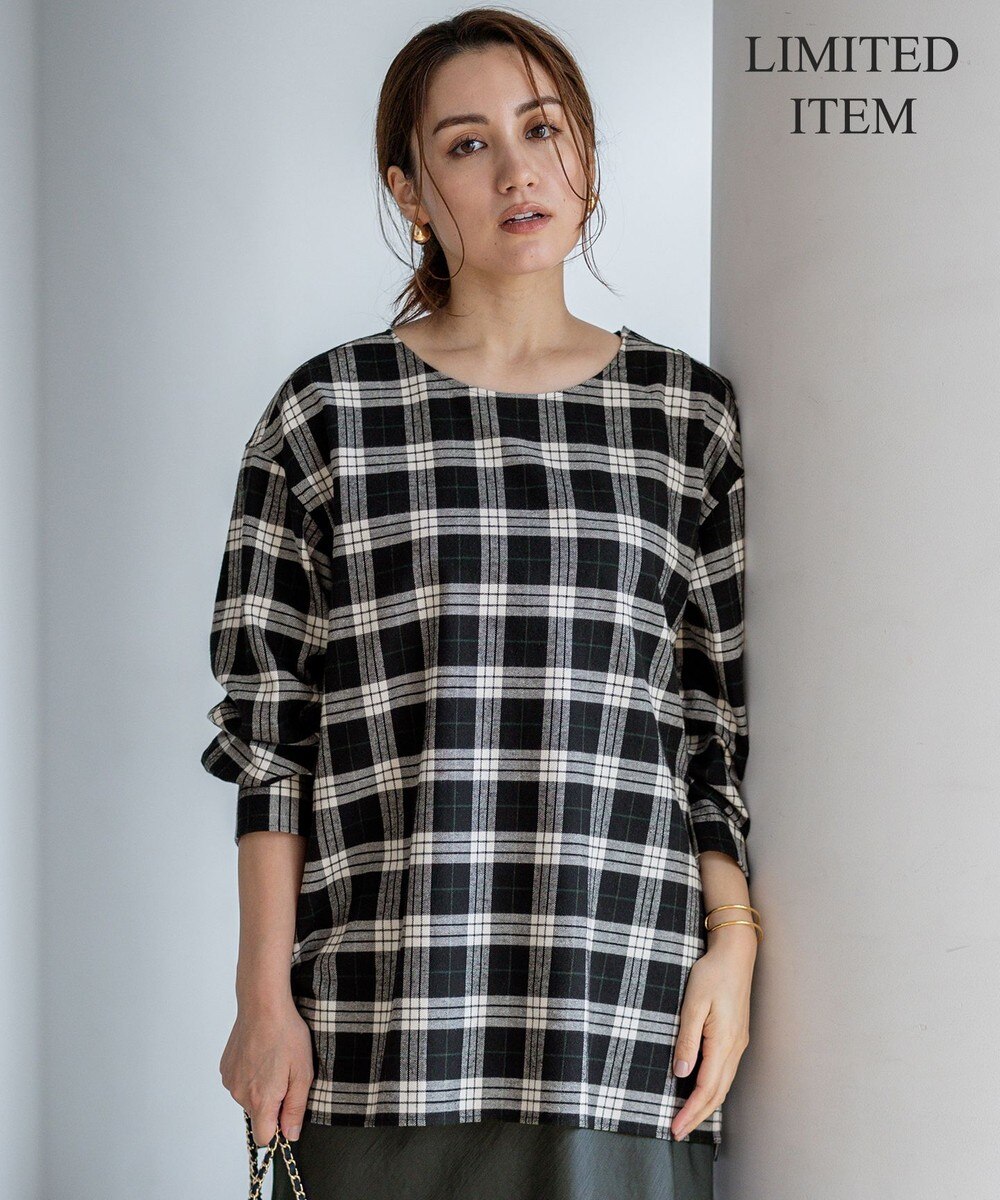 【オンワード】 23区 L(大きいサイズ)>トップス 【Lサイズ限定】ブラッシュド ビエラチェック ノーカラーブラウス モノトーン 44 レディース
