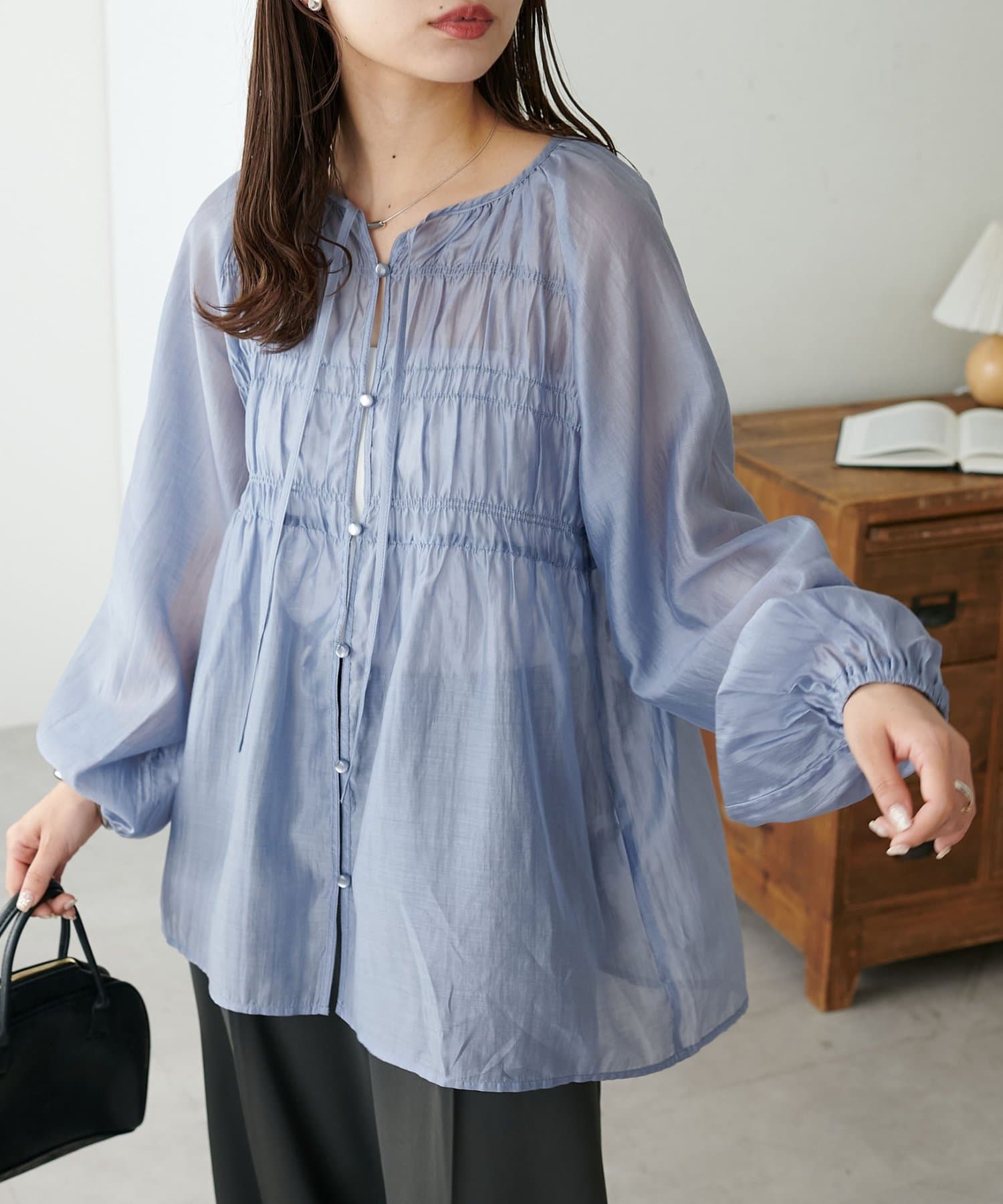DISCOAT(ディスコート) レディース 【新色追加!/WEB限定】シャーリング使いシアーブラウス ブルー