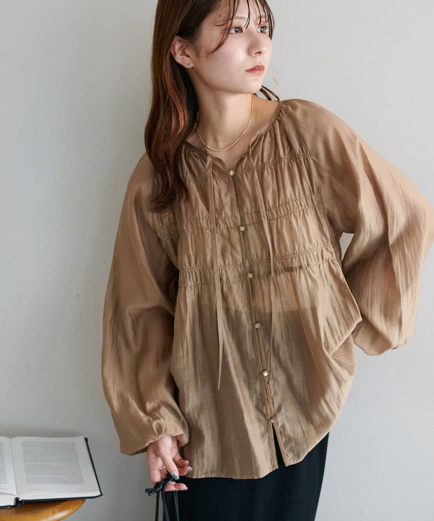 DISCOAT(ディスコート) レディース 【新色追加!/WEB限定】シャーリング使いシアーブラウス ブラウン