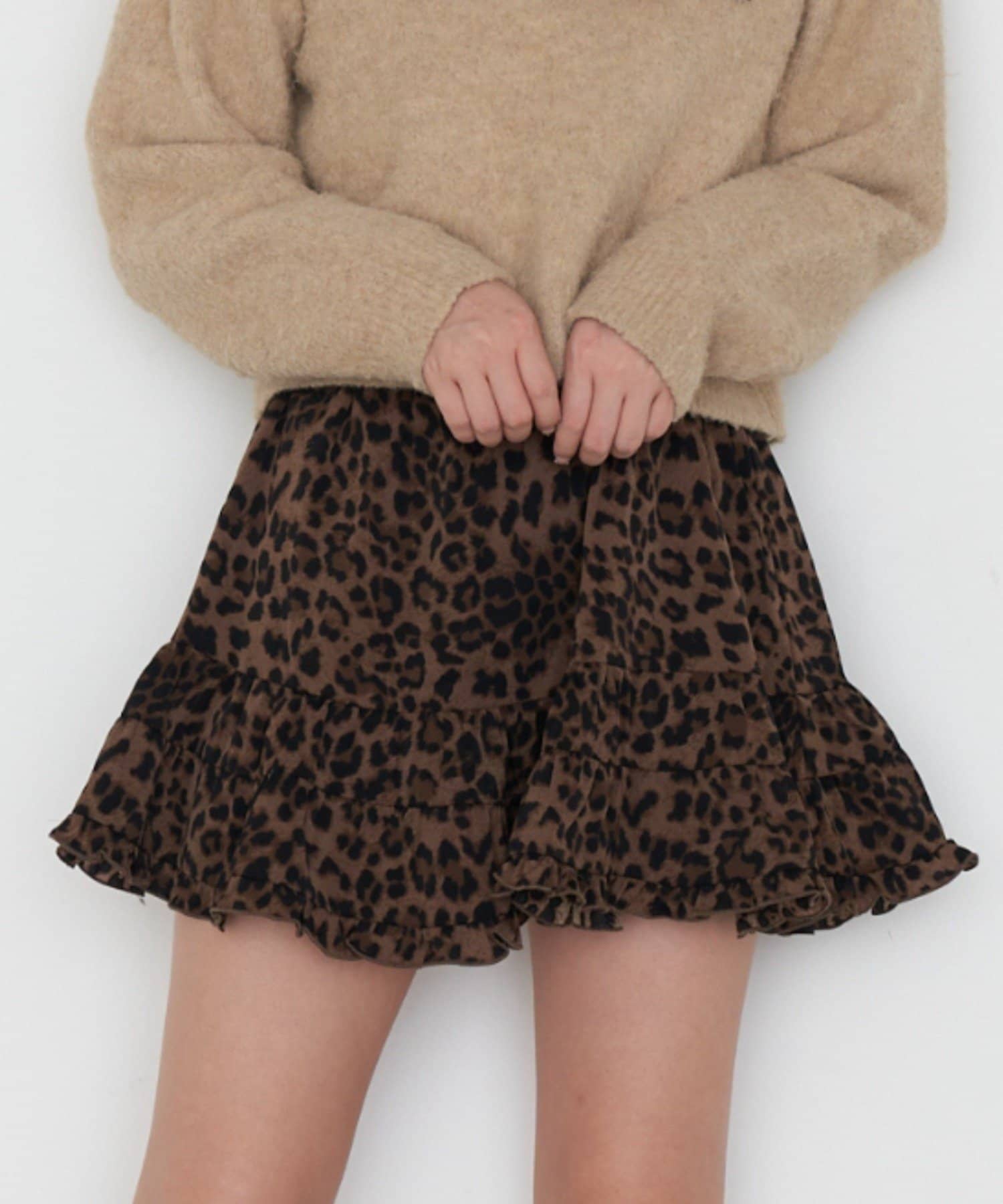 OUTLET(アウトレット) レディース 【RAY CASSIN】ヒョウ柄ティアードミニスカート ブラウン