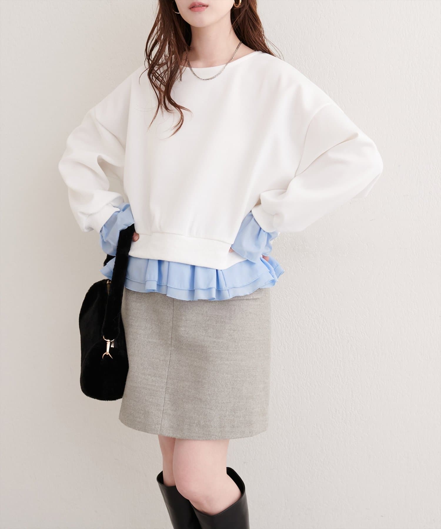 natural couture(ナチュラルクチュール) レディース フリルレイヤードプルオーバー オフホワイト
