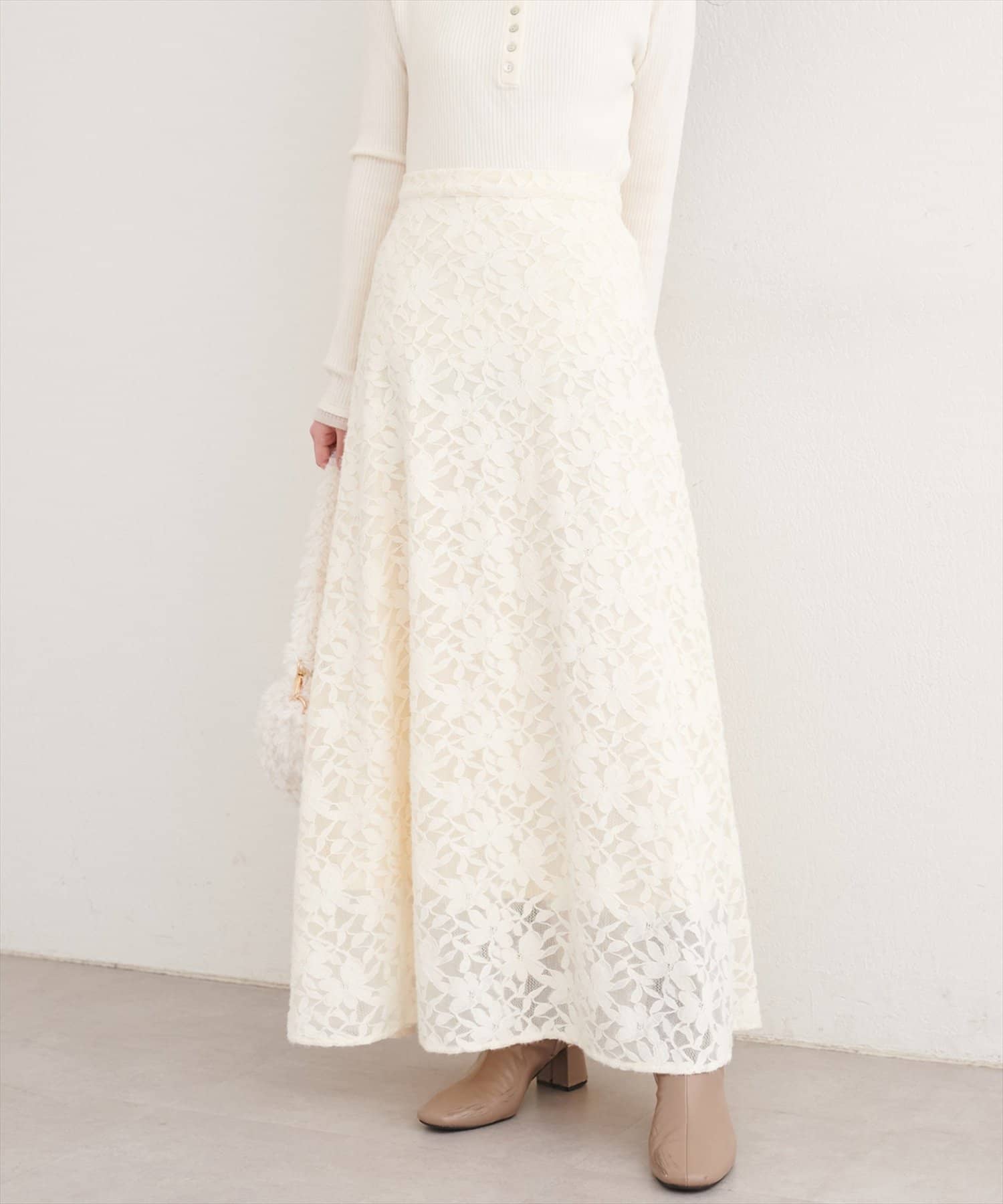 natural couture(ナチュラルクチュール) レディース 起毛レーススカート オフホワイト