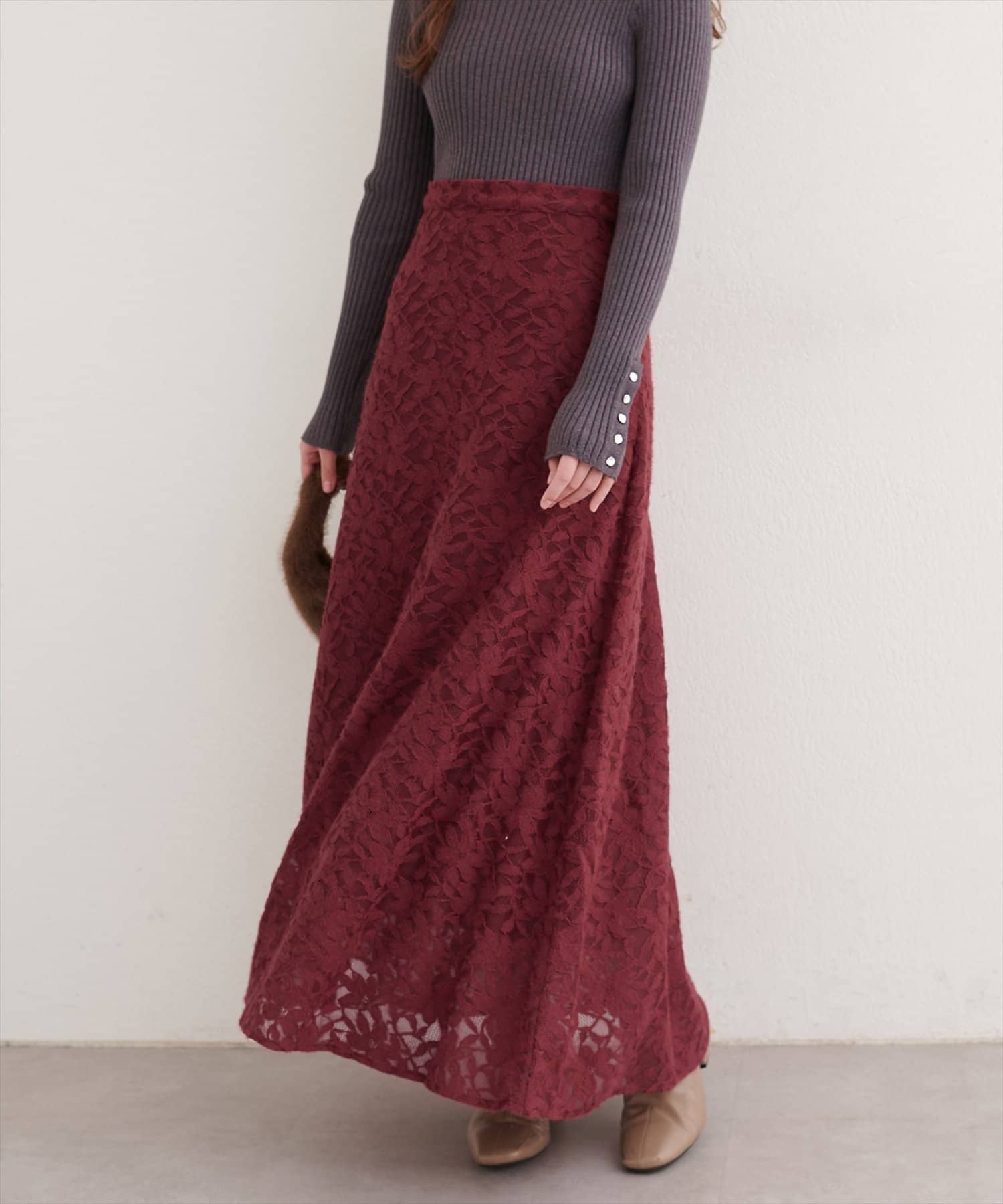 natural couture(ナチュラルクチュール) レディース 起毛レーススカート ボルドー