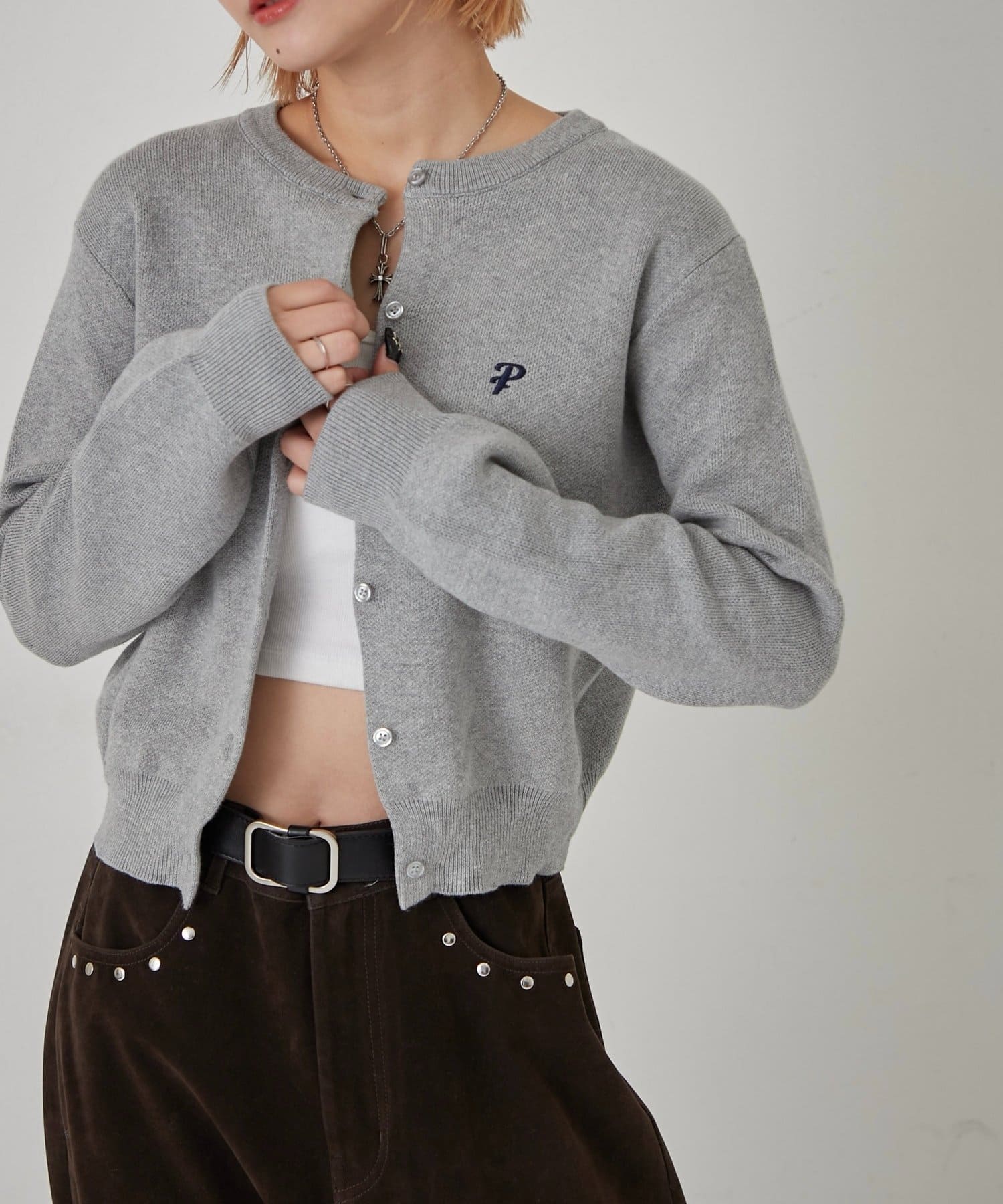 WHO'S WHO gallery(フーズフーギャラリー) レディース ワンポイントクルーカーデ グレー