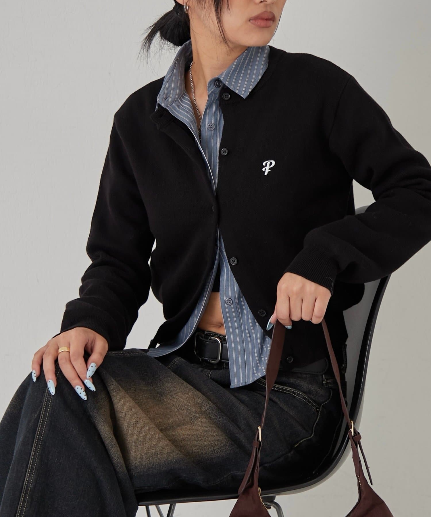 WHO'S WHO gallery(フーズフーギャラリー) レディース ワンポイントクルーカーデ ブラック