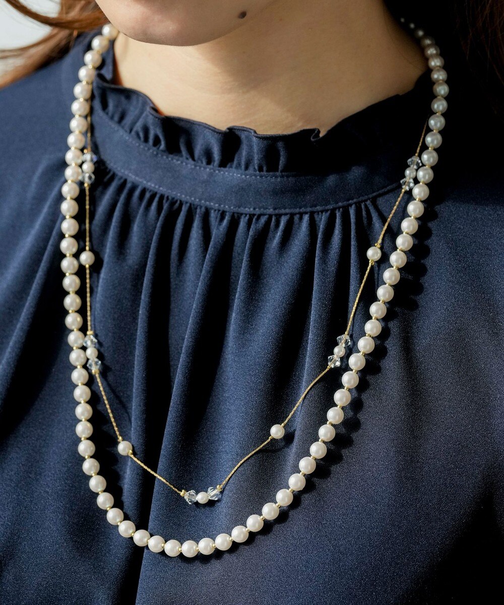 【オンワード】 ANY SIS>アクセサリー ジュエルパール調2連 ネックレス ホワイト F レディース