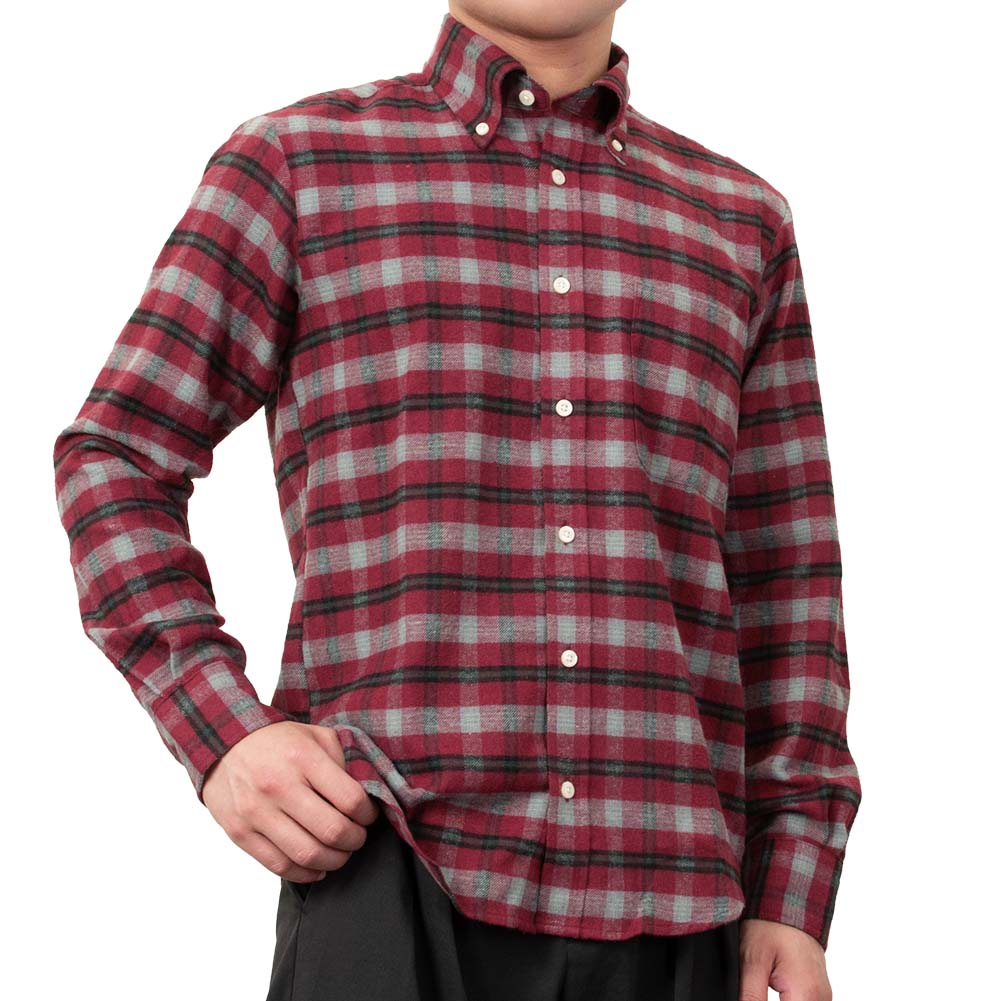 【CANTERBURY WOOD】/カジュアルシャツ/綿/ポリエステル/RED/メンズ カジュアルファッション 秋 冬 ツイル起毛 長袖 ポリエステル 綿 レーヨン リサイクルフランネル チェック ボタンダウン-M
