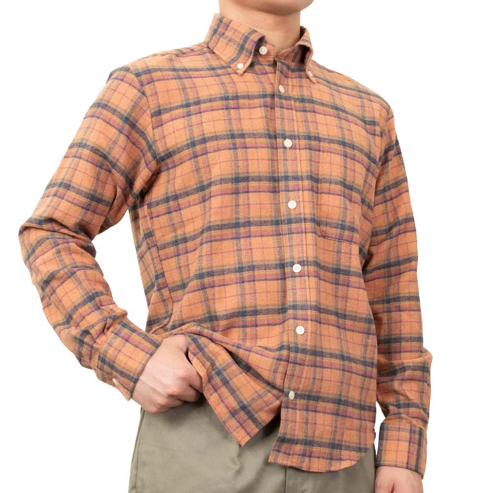 【CANTERBURY WOOD】/カジュアルシャツ/綿/ポリエステル/ORANGE/メンズ カジュアルファッション 秋 冬 ツイル起毛 長袖 ポリエステル 綿 レーヨン リサイクルフランネル チェック ボタンダウン-M