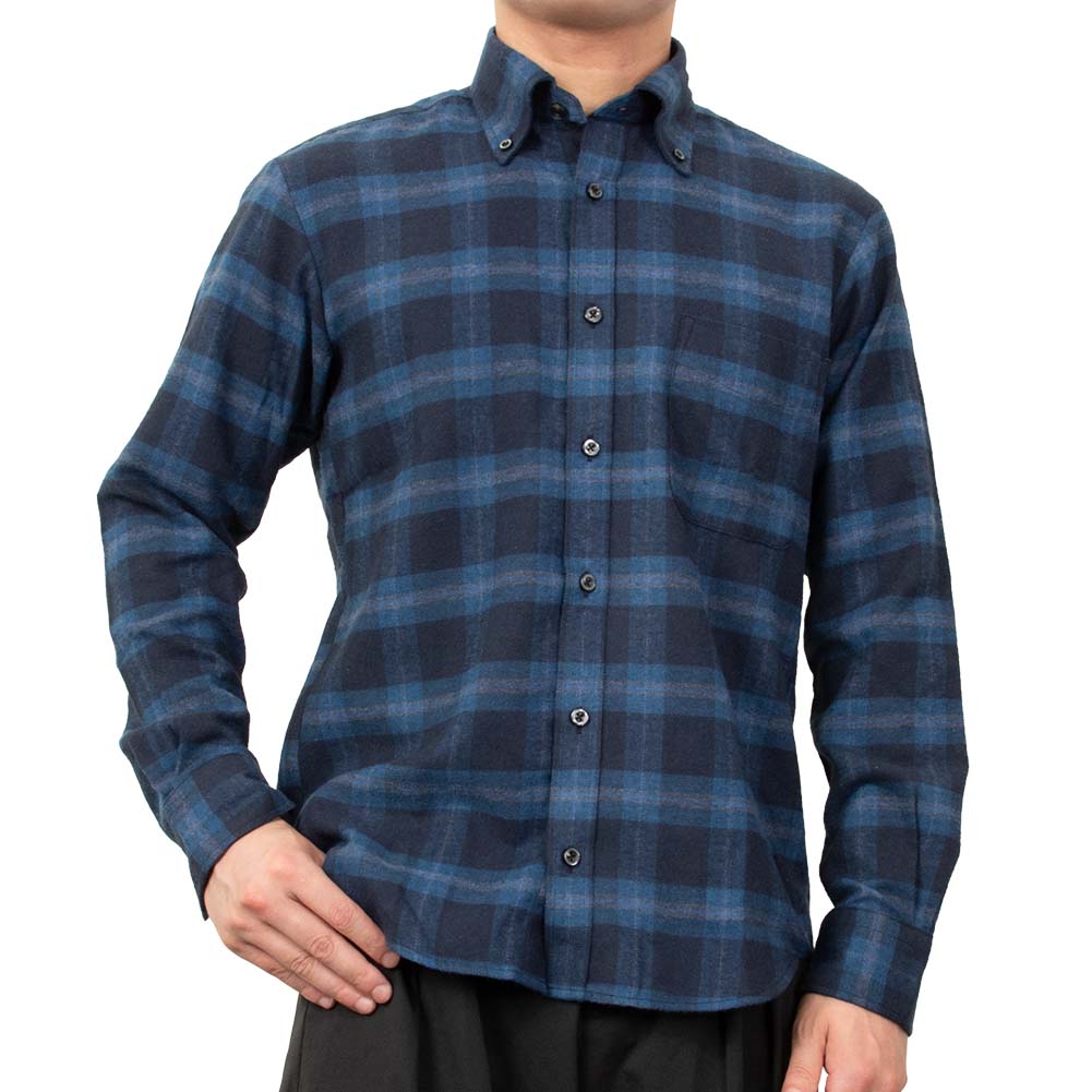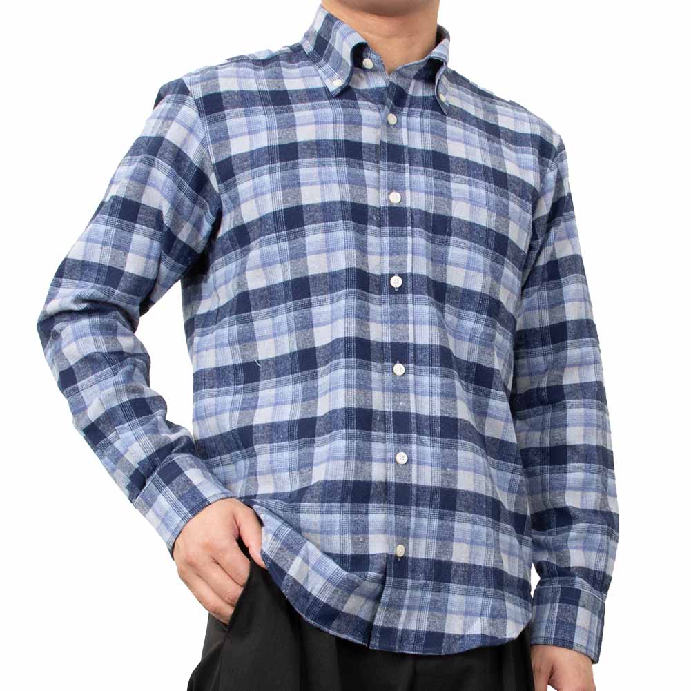 【CANTERBURY WOOD】/カジュアルシャツ/綿/ポリエステル/BLUE/メンズ カジュアルファッション 秋 冬 ツイル起毛 長袖 ポリエステル 綿 レーヨン リサイクルフランネル チェック ボタンダウン -M