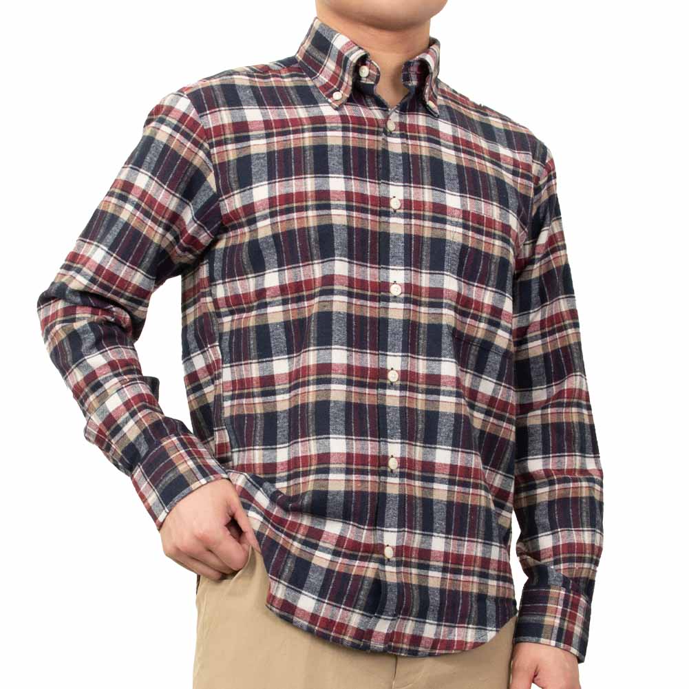 【CANTERBURY WOOD】/カジュアルシャツ/綿/ポリエステル/NAVY/メンズ カジュアルファッション 秋 冬 ツイル起毛 長袖 ポリエステル 綿 レーヨン リサイクルフランネル チェック ボタンダウン 赤青白チェック-L