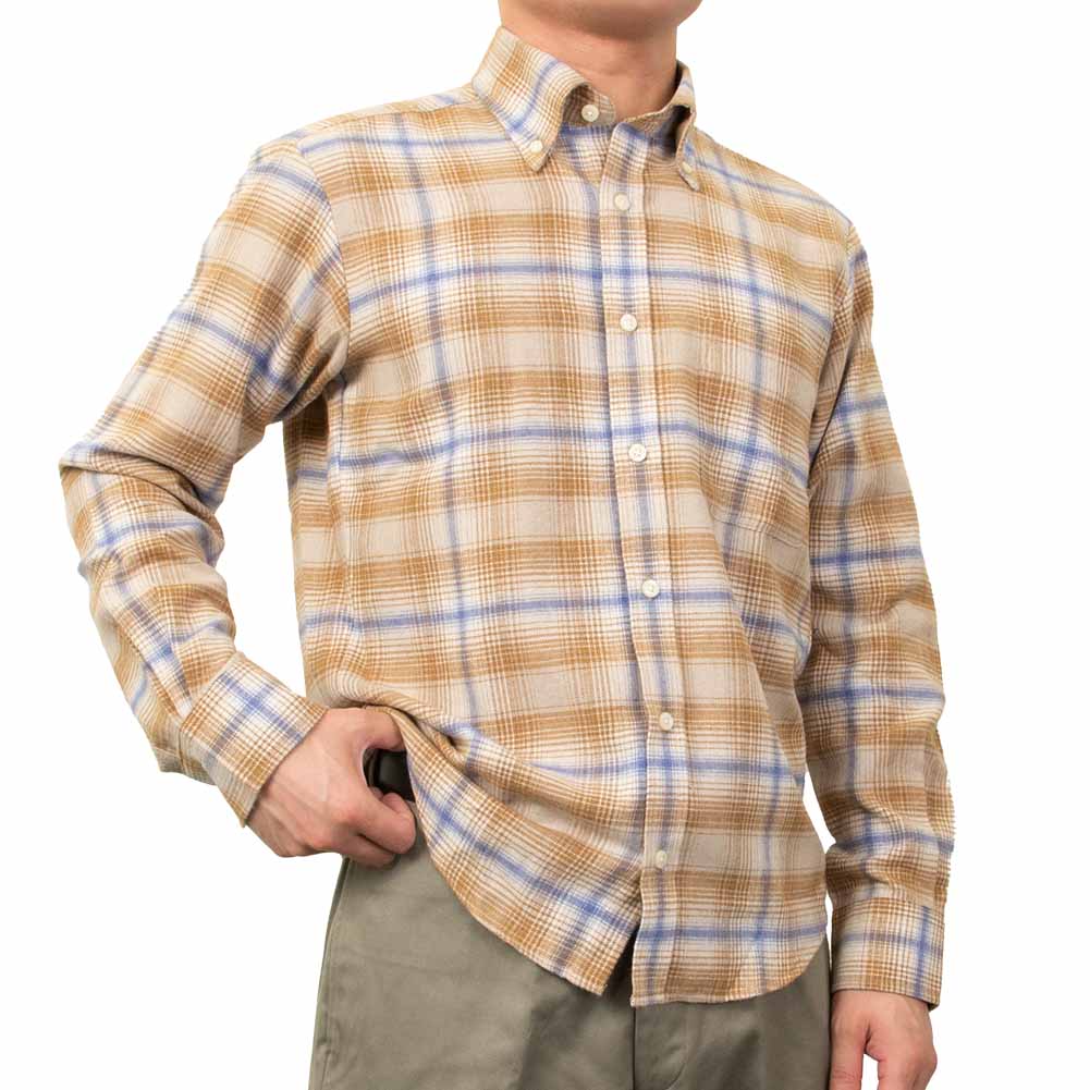 【CANTERBURY WOOD】/カジュアルシャツ/綿/ポリエステル/BEJI/メンズ カジュアルファッション 秋 冬 ツイル起毛 長袖 ポリエステル 綿 レーヨン リサイクルフランネル チェック ボタンダウン-M