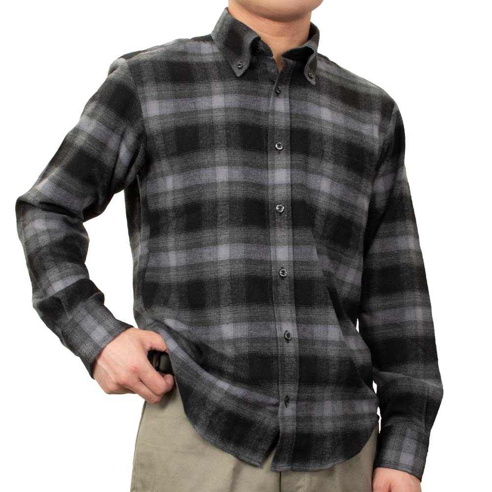 【CANTERBURY WOOD】/カジュアルシャツ/綿/ポリエステル/GRAY/メンズ カジュアルファッション 秋 冬 ツイル起毛 長袖 ポリエステル 綿 レーヨン リサイクルフランネル チェック ボタンダウン -M