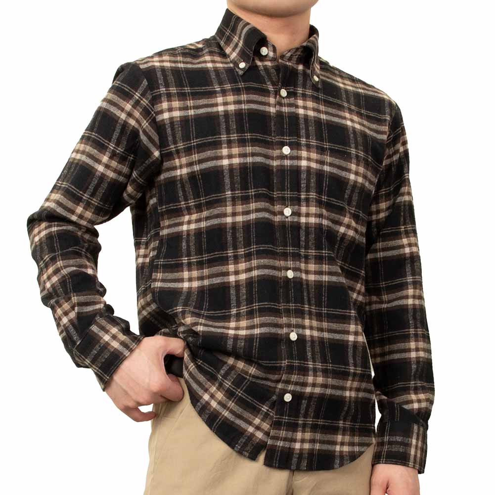 【CANTERBURY WOOD】/カジュアルシャツ/綿/ポリエステル/BROWN/メンズ カジュアルファッション 秋 冬 ツイル起毛 長袖 ポリエステル 綿 レーヨン リサイクルフランネル チェック ボタンダウン-M