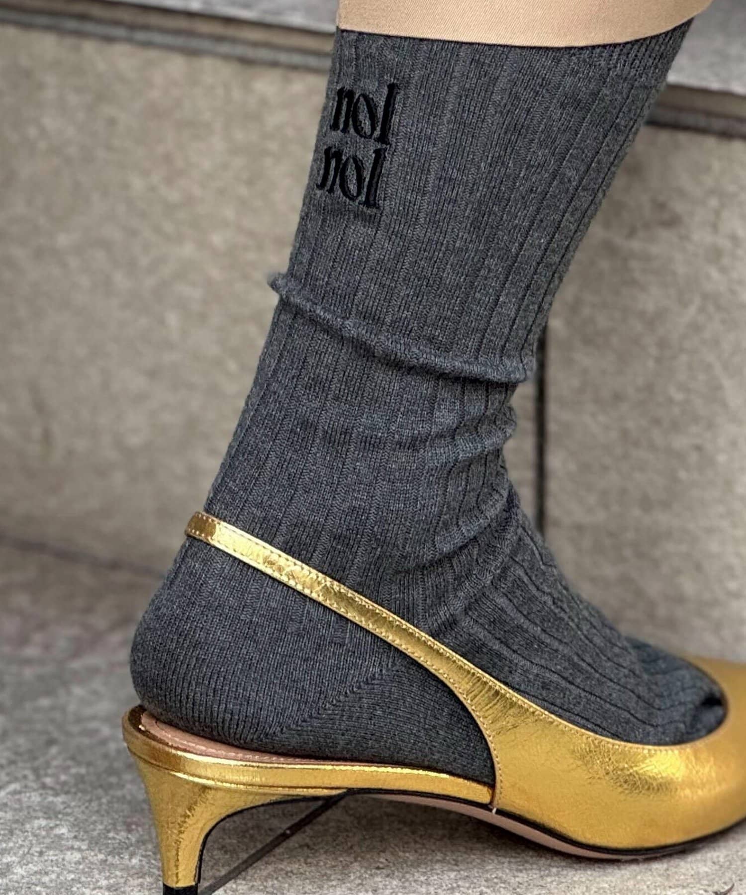 NOLLEY'S(ノーリーズ) レディース 【nolnol/ノルノル】ロゴリブソックス チャコールグレー