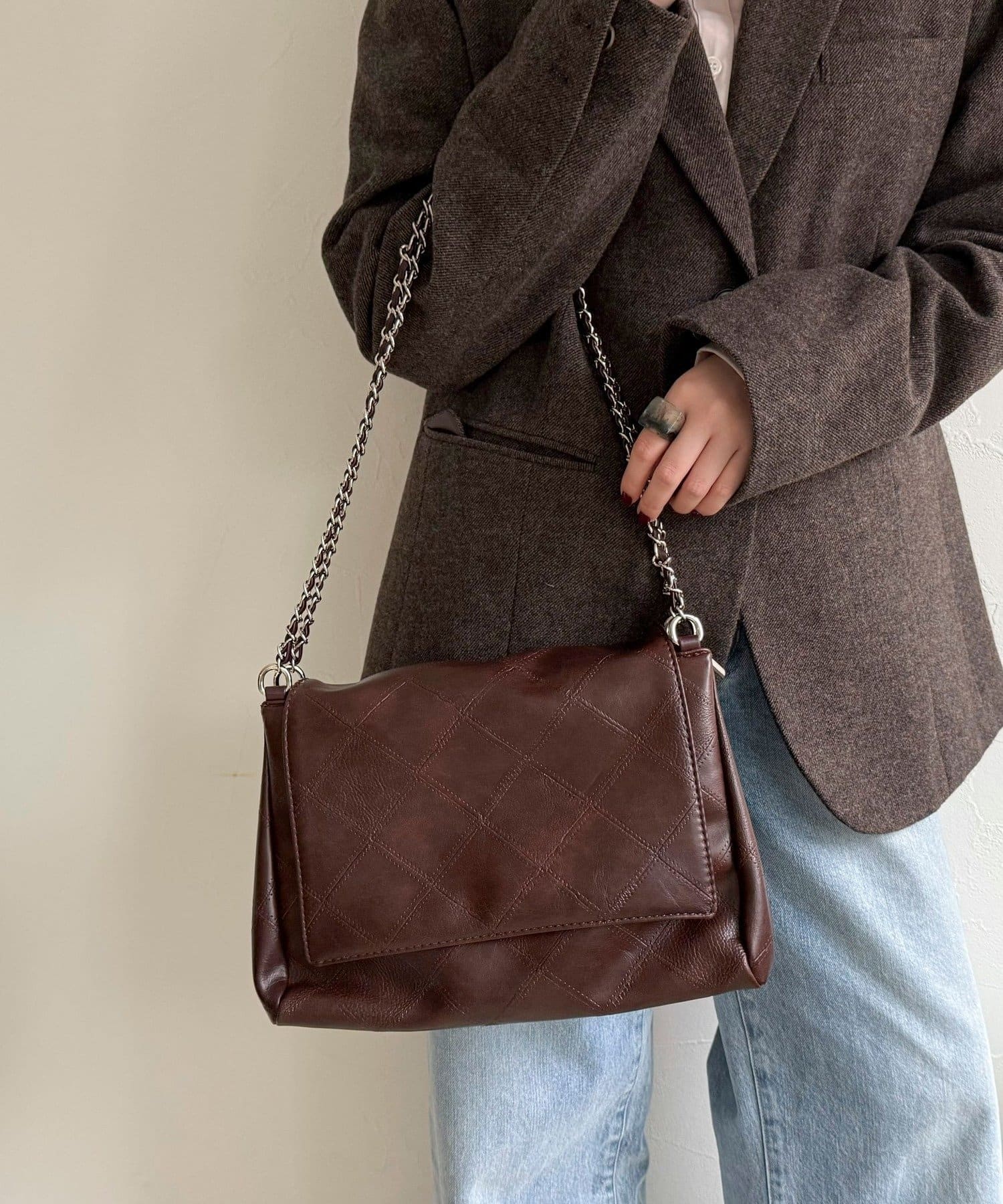 FREDY & GLOSTER(フレディ アンド グロスター) レディース キルト柄チェーンバッグ ブラウン