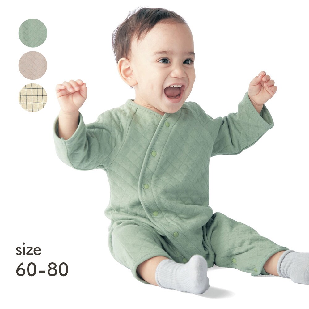 【ベルメゾン】あったかソフトキルト長袖前開きカエルロンパース 【ベビー服】