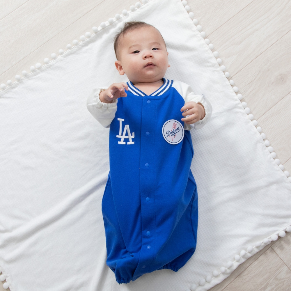 MLB スタジャン風 ロンパース ドジャース ブルー×80cm ベビーザらス限定